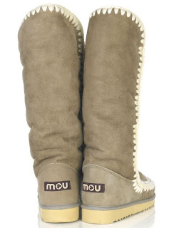 A MOU márka a kényelmes countryside feelinget hivatott képviselni. Mottójuk, hogy élj egyszerűen, szeresd a természetet és érezd a puhaságot. Múúú. (Zárójelben jegyzem csak meg, hogy az olyan országokban, mint Magyarország, ahol a vidék - ami természetesen nem egyenlő a countryside-dal emiatt - egy mélységesen lenézett valami, ez talán eleve nem egy vonzó önmeghatározás. De ez igazán nem számít.) Olyan lábbeliket gyártanak, amik kecske és báránybőrből vannak és nagyon natúr kinézetűek. Ezt mondják. Viszont nem lehet nem észeevenni a hasonlóságot a híres UGG csizmával, és igaza is van a cipőgyártóknak: ha megvesznek egy csúnya-csizma márkát, akkor van ott még hely nekünk is, meg fogják venni a másikat is. Azaz, ha megveszik az UGG-ot, akkor megveszik a MOU-t is. És nyilván így is van. Még a márkajelzés is ugyanott a saroknál található.